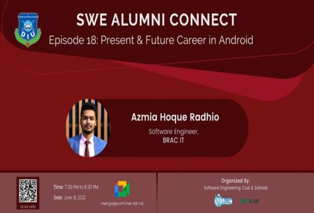 SWE Alumni Connect EPISODE 18: PRESENT & FUTURE CAREER IN ANDROID ✅ Date: June 18, 2022 ✅ Time: 7.30 PM 📌Speaker: Azmia Hoque Radhio Software Engineer at BRAC IT