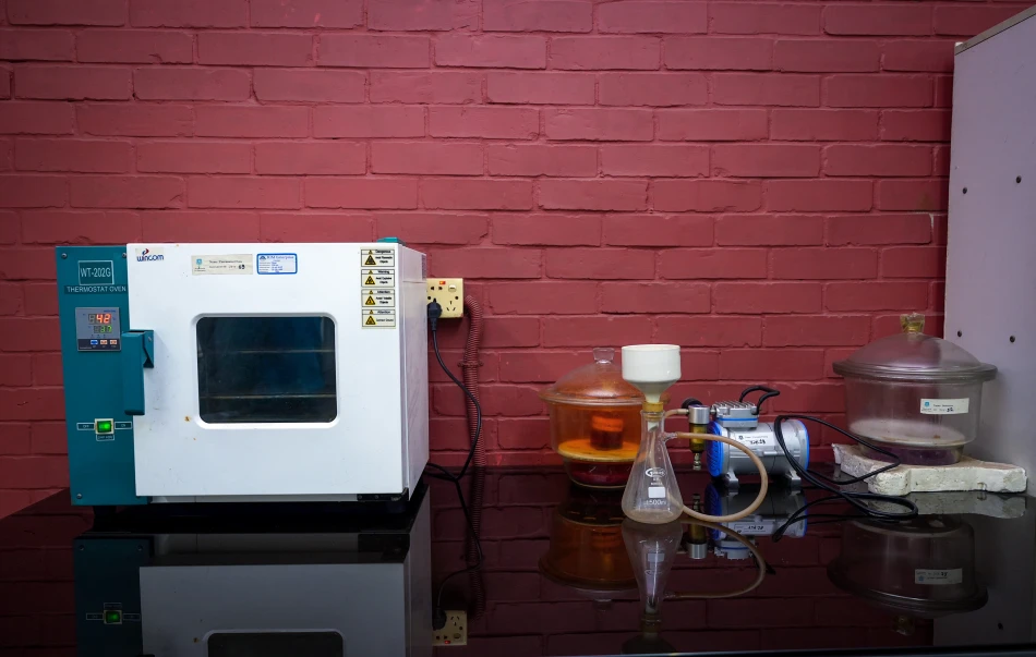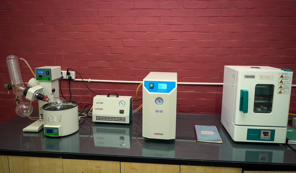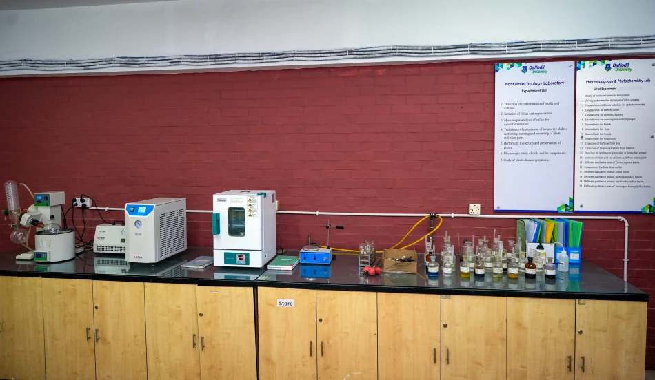 Phytochemistry and pharmacognosy laboratory focuses on the extraction, isolation, and analysis of bioactive compounds from natural sources. With specialized equipment for solvent extraction,compound concentration, and purification, the lab supports in-depth phytochemical analysis,quality assessment, and natural product research in a controlled environment.