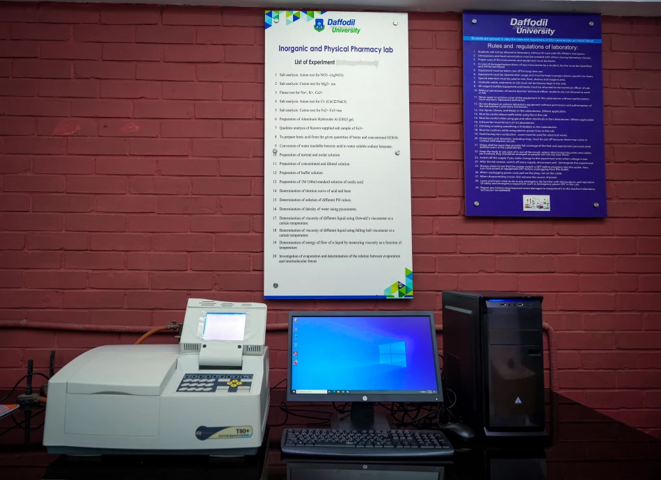 This lab is dedicated to the quantitative and qualitative analysis of pharmaceutical compounds. Students learn analytical techniques like spectroscopy, chromatography, and titration, which are essential for ensuring drug purity, efficacy, and safety in pharmaceutical products.