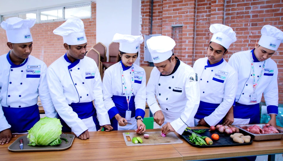 The Housekeeping Lab is a hands-on training space where students master essential hospitality skills, including bed making and various cleaning techniques. Equipped with industry-standard tools, the lab focuses on tasks such as room preparation, organization, and maintenance of hygiene standards.Students gain practical experience in delivering excellent guest service and managing housekeeping operations, preparing them for successful careers in the hospitality sector.