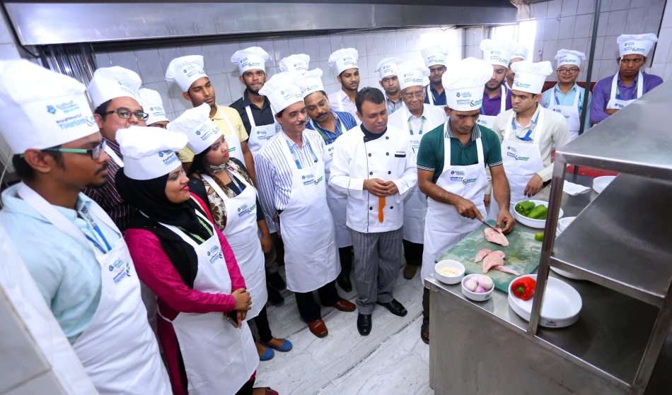 The Main Kitchen: Food and Beverage Production Lab for students is a hands-on learning space where aspiring chefs develop practical skills. Equipped with modern tools, students explore the food production process, focusing on ingredient selection, safety, and presentation. This dynamic environment fosters creativity and teamwork, preparing them for successful careers in the culinary industry.