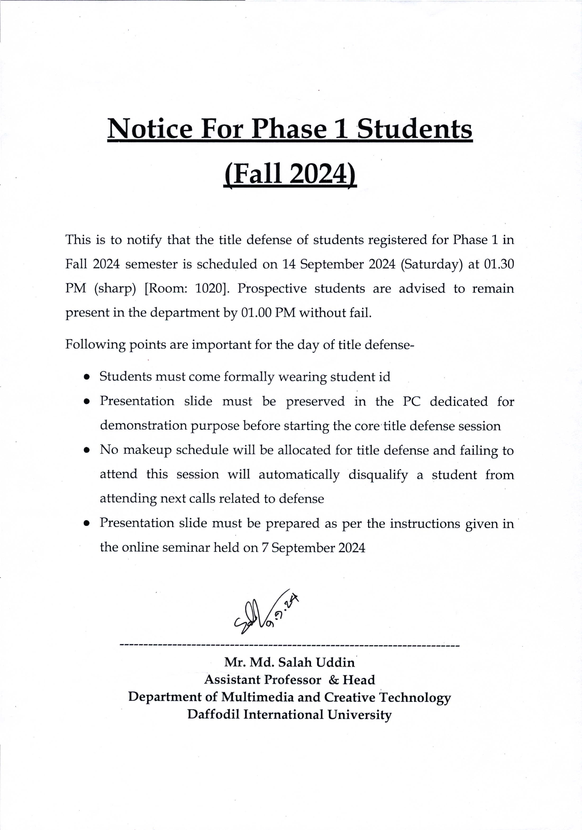 Notice for Phase 1 registered students